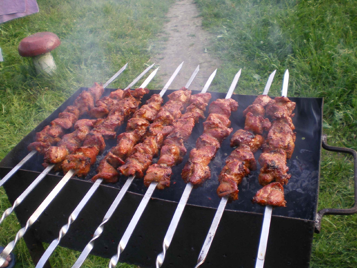 Шашлык: история, виды и особенности приготовления Шашлык — это традиционное блюдо, которое происходит из стран Центральной Азии и Восточной Европы. Изначально оно представляло собой мелко нарезанное мясо баранины, нанизанное на шампуры и запечённое на древесном угле в мангале. Со временем название «шашлык» стало использоваться для обозначения блюд из свинины, птицы, рыбы, овощей и даже грибов, приготовленных таким же способом. Ингредиенты: Приготовление: Приятного аппетита!