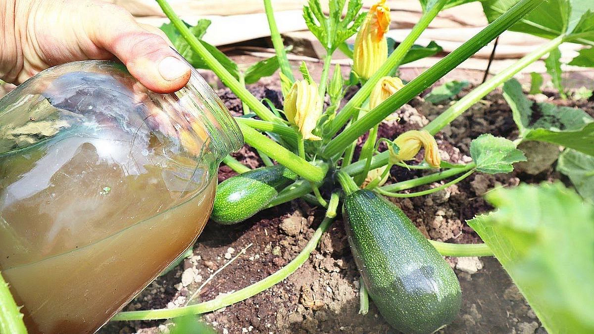 Кабачки и тыквы хорошо реагируют на подкормки органическими удобрениями, которые содержат большое количество азота и прочие питательные вещества в доступной форме. В качестве первых подкормок в середине июня можно использовать настой сорняков и прелой травы, компостный чай, а также настой куряка.