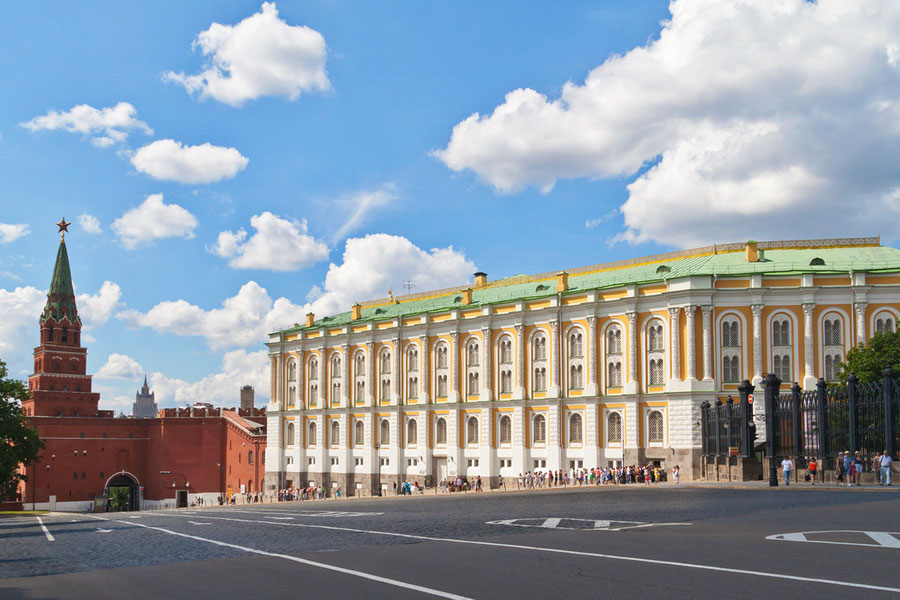 Оружейная палата находится за стенами Кремля, отдельный вход – через ворота Боровицкой башни. Билеты покупают в музейных кассах в Александровском саду.
