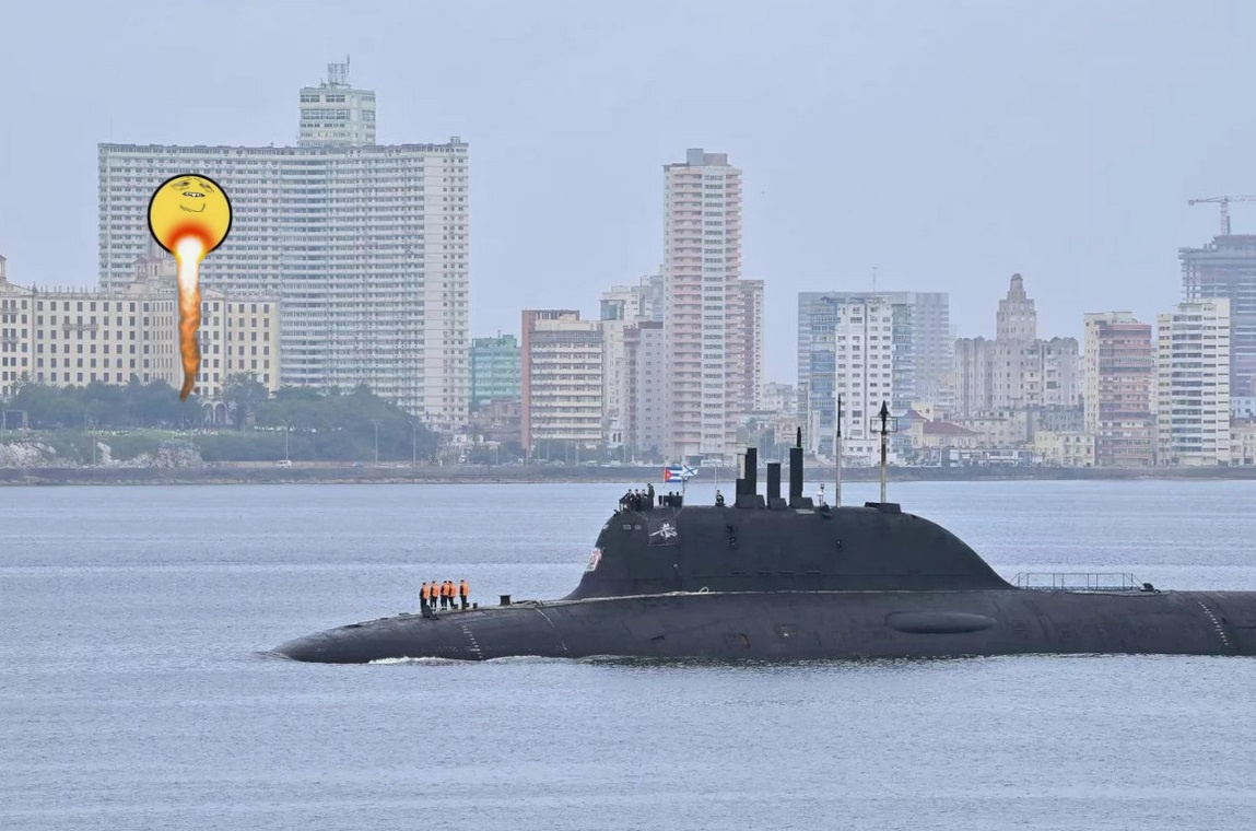 В нежном подбрюшье у США - на Кубе с дружественным визитом находятся наши военные корабли, в том числе новейшая атомная подводная лодка- стратег Просто так, на всякий случай. Немного сбить спесь и напомнить, что 5 минут подлетного времени это не только угроза для России.