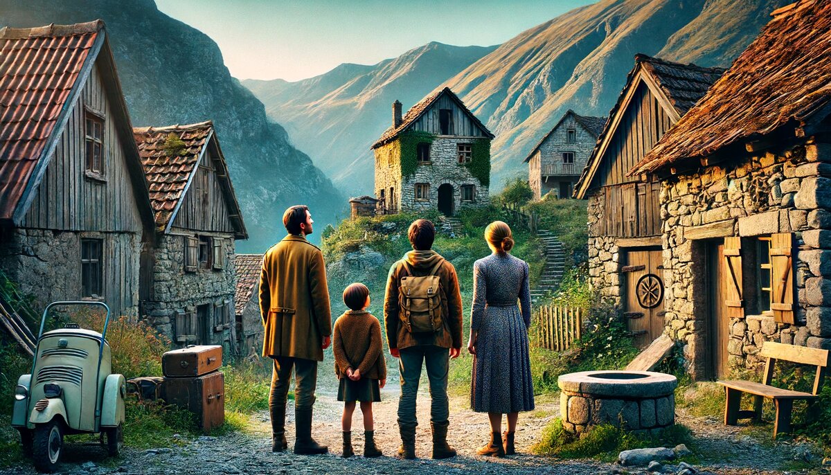 Лето было в разгаре, и семья Лебедевых решила провести отпуск в горах, подальше от городской суеты. Андрей, глава семьи, давно мечтал показать своим детям настоящую природу. Жена, Марина, поддерживала его идею, представляя, как они будут наслаждаться тишиной и свежим горным воздухом. Собрав необходимые вещи, семья отправилась в путь на своём автомобиле. Дорога к горам была живописной: вокруг тянулись бескрайние поля, покрытые разноцветными цветами, а на горизонте виднелись величественные вершины гор. Дети, Лиза и Костя, смотрели в окно с восторгом, предвкушая приключения. *** На третий день путешествия, заехав глубоко в горы, Лебедевы наткнулись на старую, заброшенную деревню. Дома, построенные из грубого камня и дерева, выглядели пустыми и покинутыми. Ни один путеводитель не упоминал об этом месте, и его не было ни на одной карте, которую они с собой взяли. — Папа, что это за место? — спросил Костя, с любопытством глядя на старинные постройки. — Похоже, это старая деревня, — ответил А