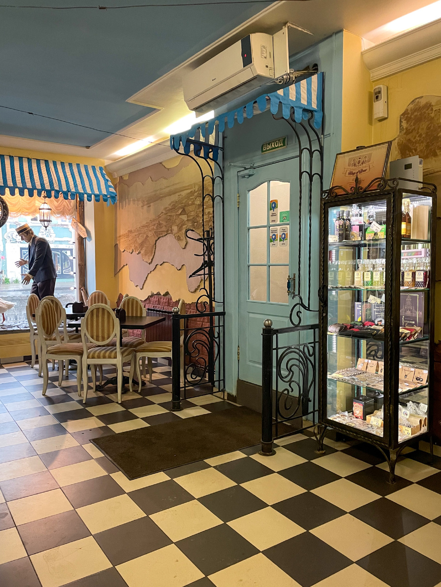 Если искать списки заведений, куда обязательно сходить в Костроме, то это точно будет в первых рядах! Интерьер ресторана создан по мотивам советского фильма «Двенадцать стульев», и, действительно, находясь там, чувствуешь себя героем какого-то кино. Мне уже не раз говорили, что ценят мой блог за честность и искренность, что я не боюсь быть собой. Поэтому и тут я буду собой и скажу, что не являюсь поклонницей советского кино и, более того, почти ничего не смотрела ☺️. Поэтому каких-то диких восторгов и ассоциаций с определёнными героями у меня это кафе не вызвало. Я пришла сюда только потому, что оно было в списке «надо», а на улице был дождь. Когда я туда зашла, есть мне не хотелось, поэтому было решено остановиться на десерте. Но, конечно, я просмотрела меню и, кстати говоря, порадовалась очень адекватным ценам! Для популярного ресторана очень хорошие цены, не завышенные. По отзывам блюда тоже очень вкусные. Я взяла свой любимый наполеон и американо (мой универсальный набор почти все