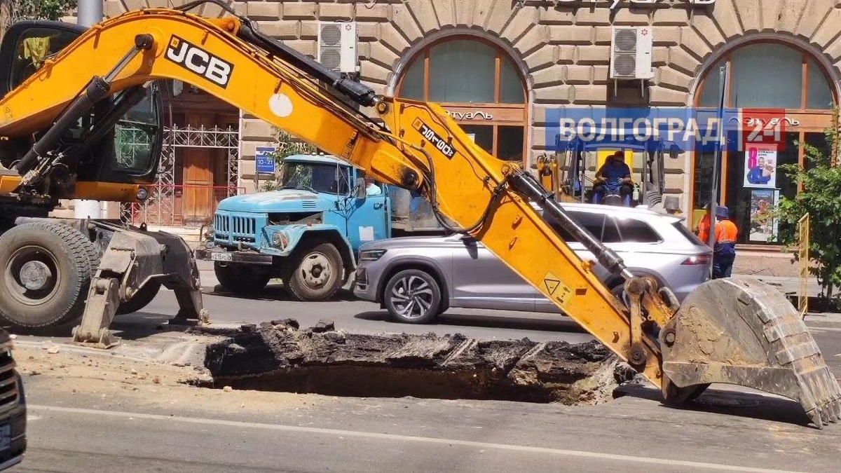 На улице Комсомольской в центре Волгограда образовался огромный дорожный провал