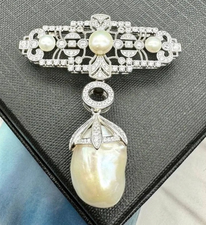 Давненько брошки меня не радовали, но и в последнее время я их красивых на Авито и не наблюдаю. Хотя может ищу плохо. Поэтому совсем чуток покажу, но очень симпатичных! В Японии покупала себе Микимото, да вот только не видела там жемчуга на серебре... а тут - прям симпатичный.... 43 300 рублей. Брошь Mikimoto жемчуг, цирконы, серебро 925 пробы. Еще одна! Эта прям "нежнятина-нежнятина". С удовольствием бы носила! 88 000 рублей. Mikimoto, натуральный жемчуг, цирконы, серебро 925 пробы. Размер - 8,5 см. Эту брошь я уже как-то встречала в продаже, но видимо ее не продали, Продавец - тот же. В разных техниках закрепа выполнены элементы. 200 000 рублей. Брошь из желтого золота 750 пробы со 169 бриллиантами Кр57-1,52ct и природными корундами. Центр – 1 бриллиант «Маркиз»-0,16ct. Вес – 42,44 грамм. На главном фото - именно эта фотография стоит, я даже не сразу поняла, что это просто брошь. Начала голову ломать "а как же называются украшения для перчаток"? Только потом дошло... Посмеялась. Кра