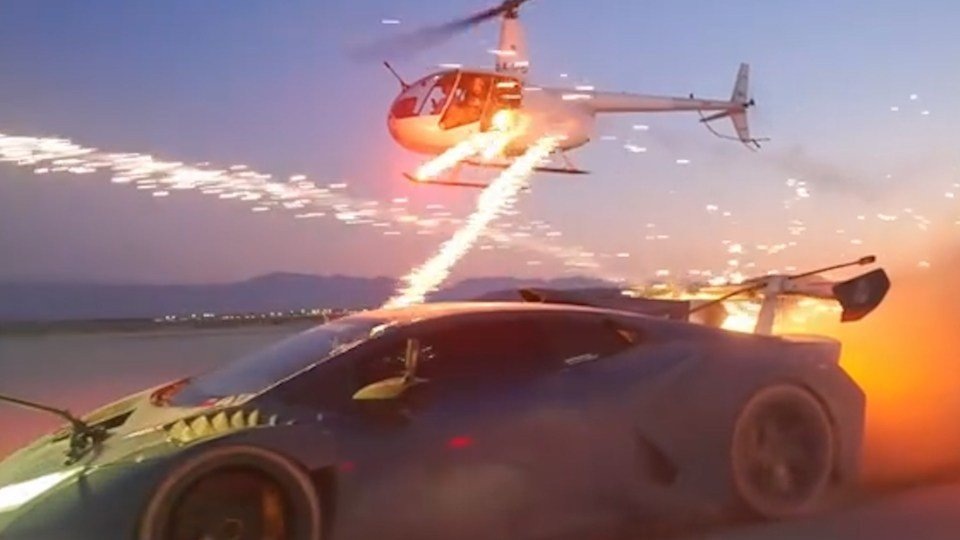 Видео, о котором идет речь, называлось «Уничтожение Lamborghini с помощью фейерверка» и было удалено с YouTube. В ролике можно увидеть вертолет Robinson, преследующий Lamborghini, мчащийся по пустыне. Две женщины в низко летящем вертолете запускают фейерверки в Lamborghini, предположительно по приказу самого блогера, который нажимает кнопку «запустить ракеты».