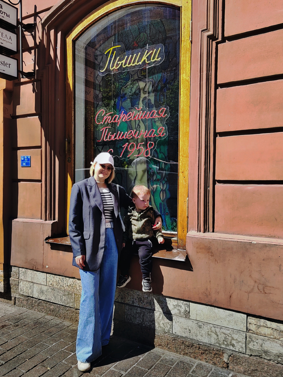 Самое интересное, что когда я мужу сказала, что хочу посетить "Пышечную", он решил, что там будут продавать пышки, а не пончики. Вот они, трудности перевода с московского на питерский. 😁🤦♂️ Приехали мы туда в субботу, после 10 утра, и обнаружили, что очередей нет. Таксист, который нас вёз, отметил, что в пятницу около "Пышечной" было не протолкнуться. По всей видимости, пятница для петербуржцев и гостей столицы — любимый день недели. Ночью под нашими окнами так орала какая-то женщина, что мы думали, с ней делают что-то нехорошее. 🤦♂️ "Пышечная", в которой были мы, располагается на Большой Конюшенной улице. Когда заходишь, в нос сразу бьёт неприятный запах еды и немытого тела. Честно признаться, я думала, что не выдержу и уйду. Запах из-за того, что окна закрыты и по сути вентиляции нет. Зал разделён на две части. В каждой из них — кассы и столики. Залы небольшие. У касс стоят сувенирные изделия, например, свекрови я купила шоколад с местными достопримечательностям. Она у меня ш