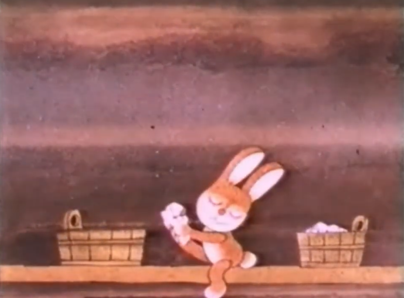 Мультфильм был снят на Латвийском телевидении. Сюжет действия крайне прост - семья зайчиков устроила на лугу баньку. Но к ним нагрянул щенок, который всех распугал. Самый маленький зайчик убежал так далеко, что потерялся в темноте.