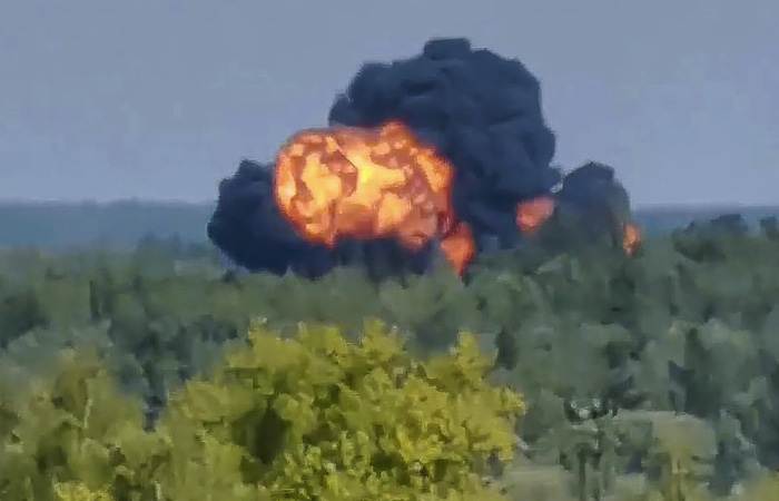 На видео, снятом местными жителями, видно, что у самолета перед падением загорелся один из двигателей.