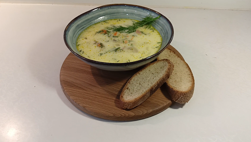 1. Курицу моем и нарезаем кусочками 2. Лук чистим и нарезаем дольками 3. Морковь чистим и натираем на терке 4. Шампиньоны нарежьте средними кусочками или пластинками 5. Картофель очищаем и нарезаем небольшими кубиками 6. В кастрюле с толстым дном разогреть растительное масло, добавляем курицу и обжариваем 5-7 минут 7. Лук и морковь добавляем в кастрюлю к говядине, перемешиваем 8. Добавляем шампиньоны и тушим 10 минут 9. Закидываем картошку, заливаем кипятком, варим 10-15 минут 10. В конце добавляем плавленый сыр, соль 11. Закидываем укроп, варим 3 минуты и выключаем Видео рецепт на канале: