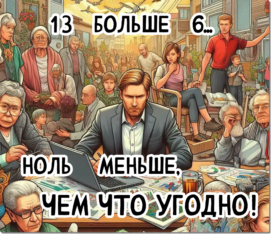 А теперь посмотрим в математику, но дальше примитивной арифметики, которая диктует нам, что 6 меньше 13. Хотя нет, начать можно с нее же: 0 всегда будет меньше, чем любая положительная цифра. Цифра, которая составит