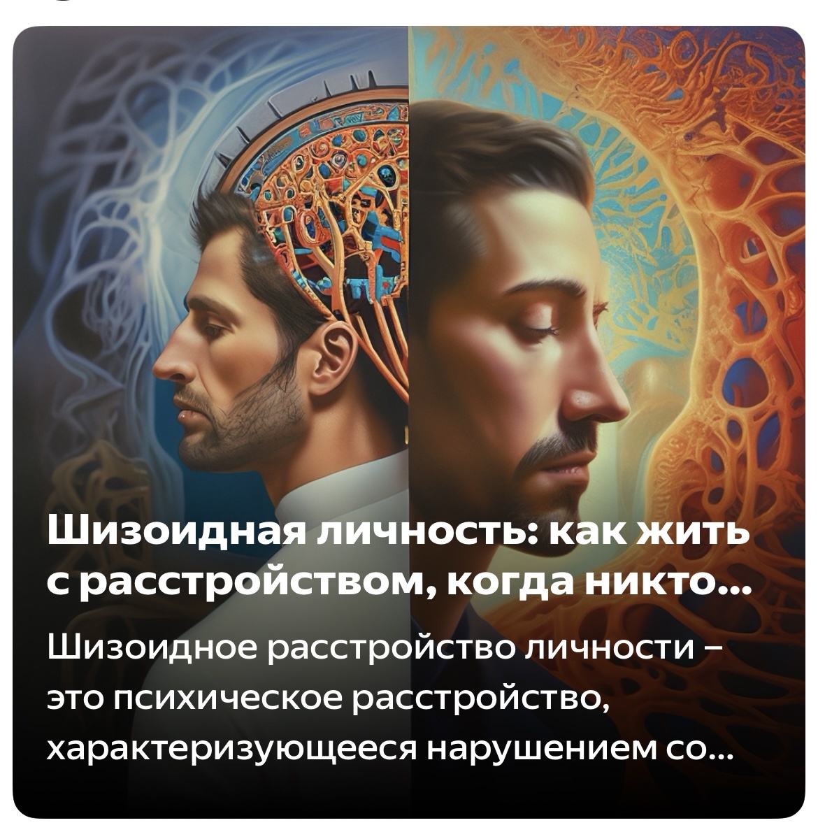 Шизоидное расстройство личности – это психическое расстройство, характеризующееся нарушением социальных связей, эмоциональной холодности и неспособностью устанавливать близкие отношения. Люди с шизоидным расстройством личности часто кажутся отстраненными, неэмоциональными и безразличными к окружающим. Они могут иметь трудности в установлении связей с другими людьми и в общении с ними. Люди с шизоидной личностью могут быть очень умными и интеллектуально развитыми, но они также могут быть склонны к изоляции и одиночеству. Они часто имеют узкий круг близких друзей или вовсе не имеют его. Они могут быть интровертами, которые предпочитают проводить время в одиночестве или с небольшой группой близких людей. Шизоидная личность может проявляться в различных формах. Некоторые люди с этим расстройством могут быть слишком замкнутыми и отчужденными, чтобы устанавливать связи с другими. Другие могут иметь проблемы в установлении близких отношений, но при этом не чувствовать себя изолированными.