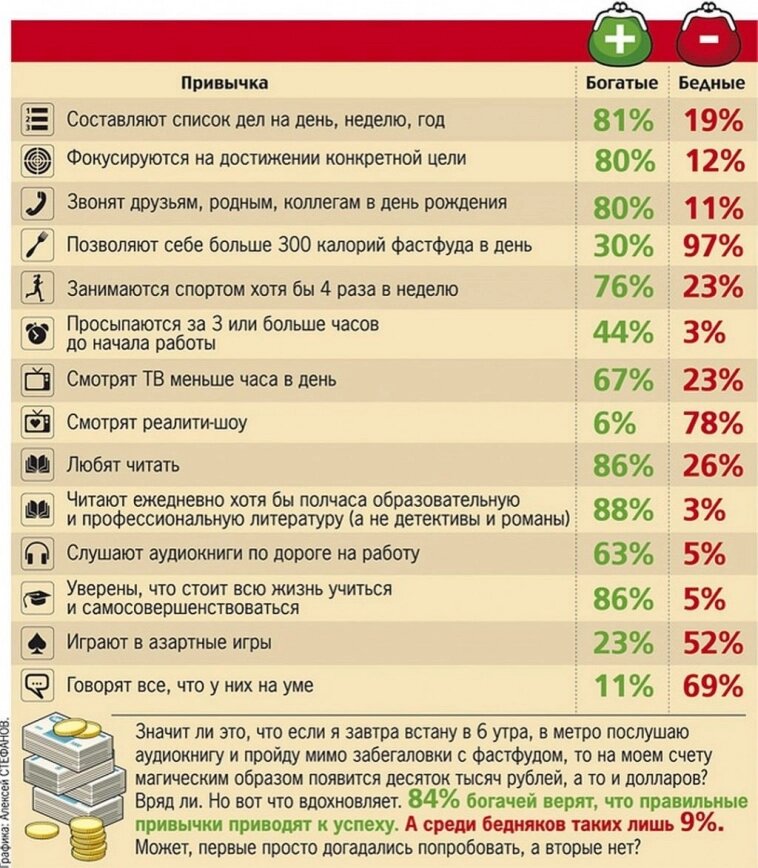 Богатые 81% / Бедные 19% 2. Фокусируются на достижении конкретной цели