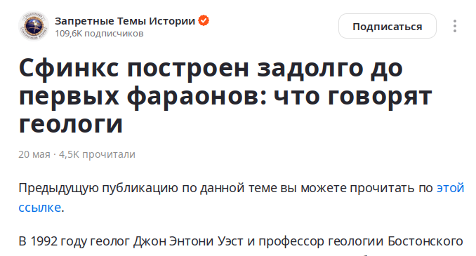 Великому Сфинксу с плато Гизы давно икается от изощренной фантазии нетрадиционных псевдо-историков. И на канале есть несколько статей, посвященных примерам того, как способны всея альто извращать факты в угоду своих теорий.