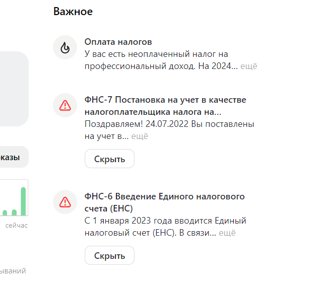 Почему в Дзен падают именно эти, а не какие-то другие налоговые уведомления, тоже непонятно. Вот у меня на скрине самые свежие : )) В середине 2024 года меня решили проинформировать о том, что я два года назад оформила самозанятость и что с 1 января 2023 года вводится ЕНС. Ну надо же, какие актуальные новости, спасибо Дзену, что догнал и напомнил!