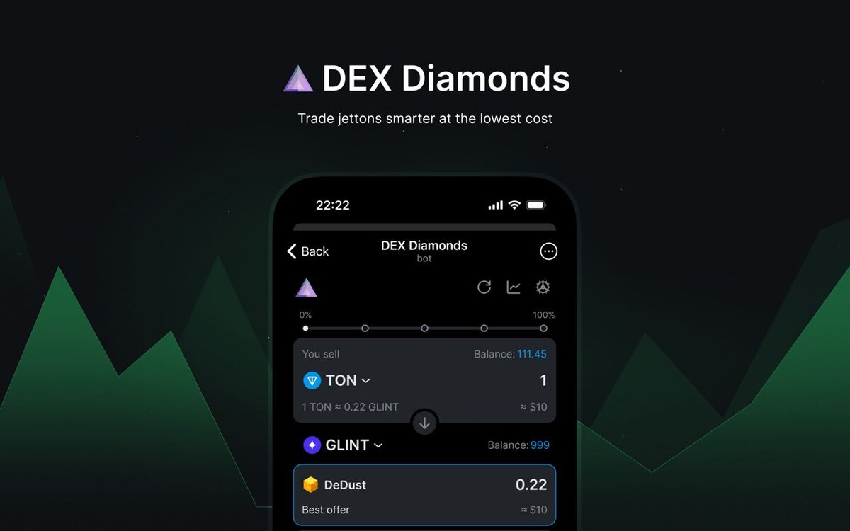 Сегодня стартует наша собственная Telegram Mini App, что означает начало новой эры для TON Diamonds DEX, ведущего агрегатора децентрализованных обменов токенов на TON. Год назад мы, команда TON Diamonds, поверили в взрывной рост токенов на TON. Мы представили себе агрегирующую платформу DEX как мостик для пользователей, чтобы экономить на каждой сделке с токенами с различными поставщиками ликвидности. За последние 8 месяцев мы достигли 100 000 сделок на общую сумму $50 миллионов, подчеркивая наш быстрый рост и доверие пользователей. Мы рады представить нашу совершенно новую Telegram Mini App, DEXDiamondsBot. Приложение имеет обновленный интерфейс и предлагает лучшие курсы обмена токенов прямо в момент, когда вам это нужно. Присоединяйтесь к DEX Diamonds @DEXDiamondsBot сегодня и испытайте будущее обмена токенов. Мы стремимся предоставлять значительные и значимые инновации для сообщества TON. Начните торговать умнее с DEX Diamonds прямо сейчас DEXDiamondsBot!