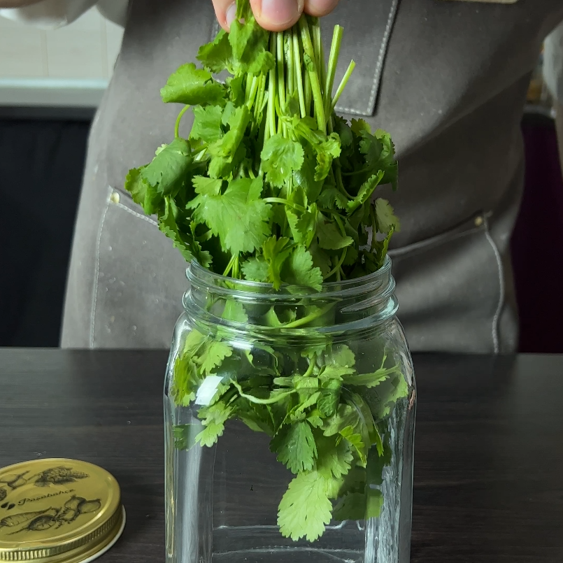 Свежая зелень - незаменимый ингредиент в кулинарии, но она быстро теряет свой свежий внешний вид и вянет. Чтобы продлить срок хранения зелени, попробуйте эти простые и эффективные методы: Поместите стебли зелени (петрушка, укроп, базилик и т.д.) в стакан или банку с водой, как букет цветов. Накройте пакетом или пищевой пленкой и храните в холодильнике. Меняйте воду каждые 2-3 дня. Или можно саму зелень поместить в банку стеблями вверх, перевернуть банку и вставить стебли в маленькую баночку с водой. При этом маленькая баночка должна оказаться внутри большой, как я показал на данных фото. Данный способ хорошо подойдет для тех, кто предпочитает выращивать свою зелень на дачах и зимой ее использовать.