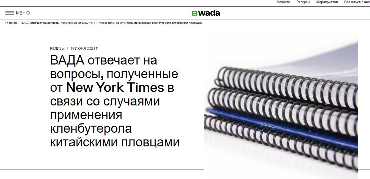 В четверг, 13 июня, Всемирное антидопинговое агентство (ВАДА) получило вопросы от New York Times в связи со случаями 2016 и 2017 годов, когда у спортсменов из Китая был положительный результат теста на следовые количества кленбутерола, попавшего в организм через заражение мяса.