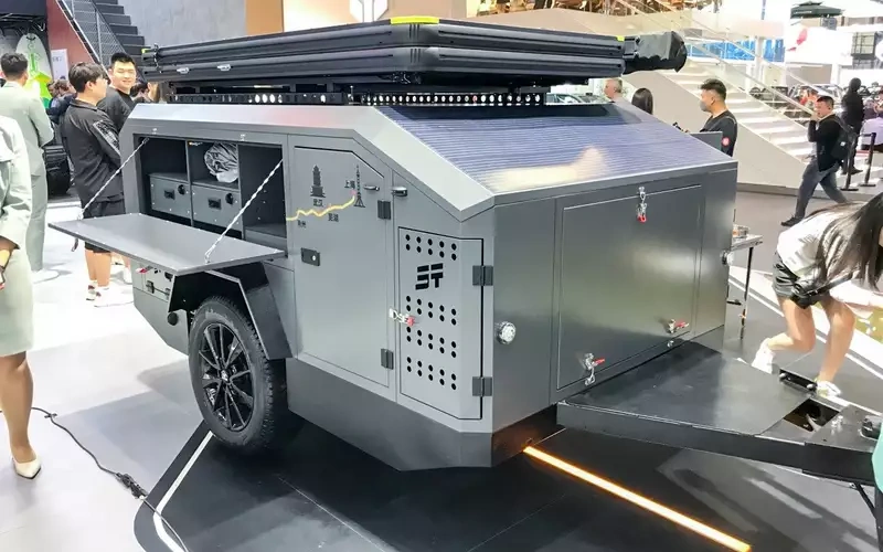 Марка Jetour позиционирует себя как производителя машин для путешествий. Она предлагает широкий набор туристических аксессуаров, а на Пекинском автосалоне выкатила фирменный прицеп для вылазок в дикую природу. Как водится у китайцев, не без изюминки. Полноценного жилого пространства под крышей со всеми удобствами нет. Спать и укрываться от непогоды предлагается в машине или в палатке, которую можно разложить на крыше автомобиля или прицепа. Зато всё остальное в наличии: конфорка, раковина, бак на 120 л воды, подогрев воды, розетка и USB-порты, ящики для вещей. Электричество вырабатывает 5-киловаттный дизель-генератор. Обычный кемпер комфортнее, но и заметно дороже. С прицепом Jetour тоже можно организовать необходимый уют и провести несколько ночей вдали от цивилизации. Сейчас бренд активно развивается на российском рынке — не исключено, что при хороших продажах автомобилей подобный прицеп тоже появится у дилеров.