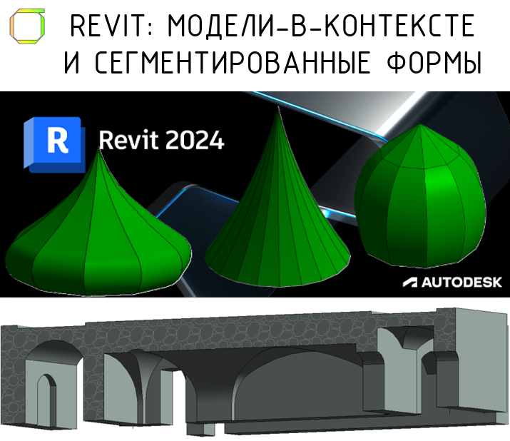 В предыдущей записи я упоминал об особенностях работы над объектами реставрации, о том, что бывает, что возникает необходимость моделирования существующих конструкций. На том же объекте реставрации, который рассматривался в прошлой записи, были архитектурные элементы с особыми формами, моделировать которые было удобно моделями-в-контексте. Этим методом удобно было построить сводчатые стены и перекрытия подвальных помещений. Сначала простым выдавливанием построил общий объем этажа, а затем – полые элементы, которые «вырезал» из общего объема. С этой задачей не возникло вопросов, как и с моделированием малых архитектурных форм на первом этаже. Более интересным мне показалось решение другой задачи с применением модели-в-контексте. На куполах башен были навершия. Их можно было устроить многочисленными выдавливаниями и вырезаниями или переходами, - без больших проблем. Но нашелся более простой способ, который, однако, не очевиден. Можно построить эти навершия Сдвигом. Для большей нагляднос