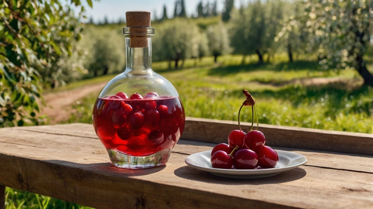 - Вишню размять, положить в стеклянную банку, залить самогоном (водкой).