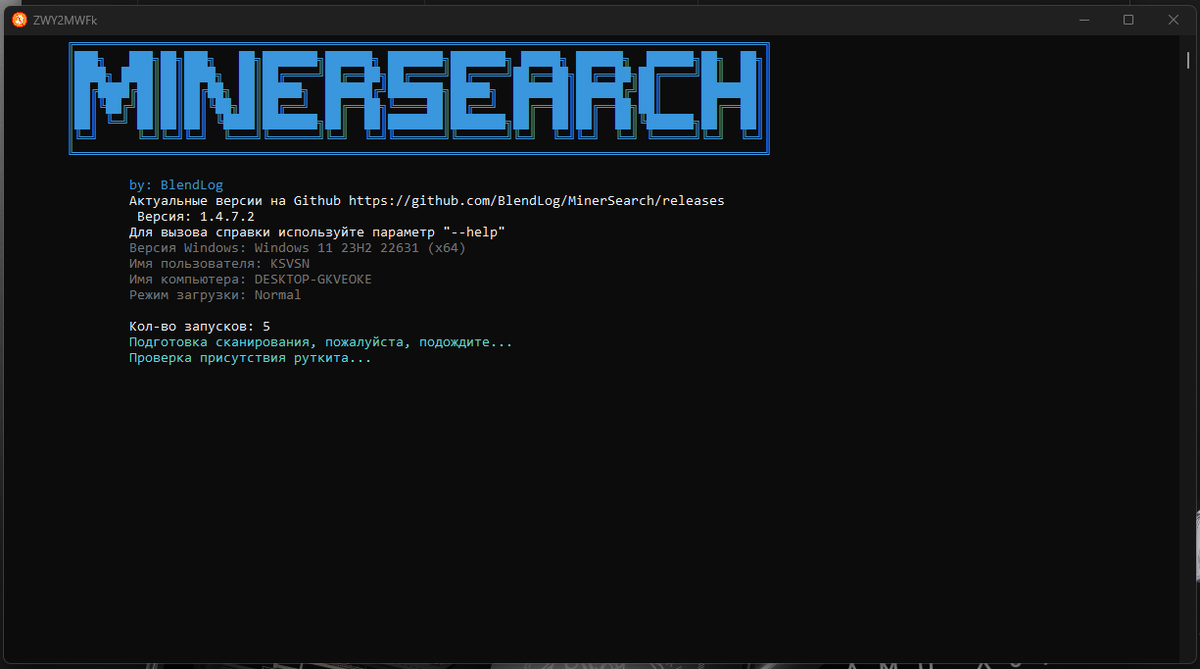 MinerSearch-программа для поиска и удаления майнеров Проверка наличие руткита майнера.
