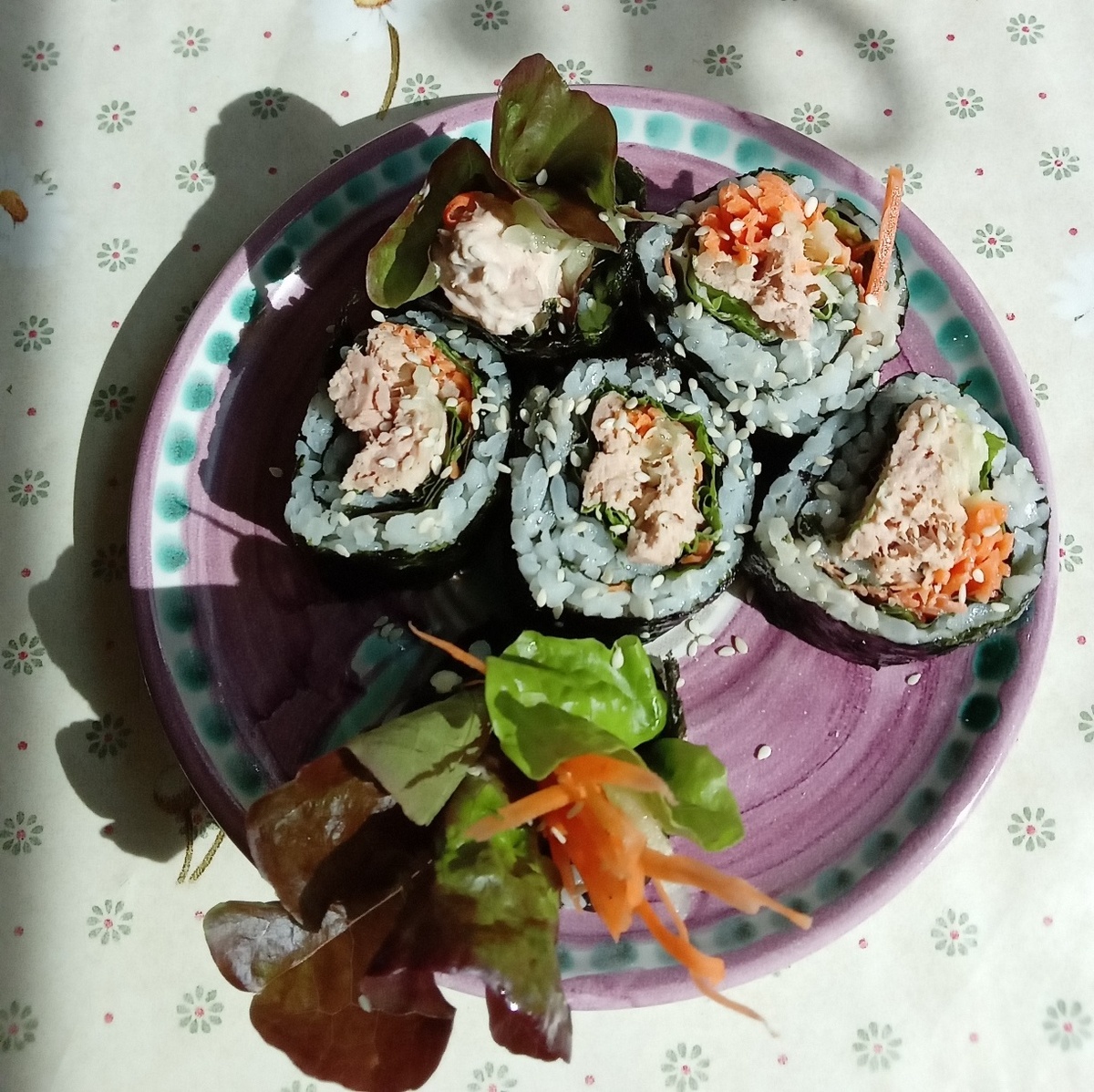 Рецепт кимбапа я подсмотрела в кулинарном шоу "Кухня Джинни" - там ими занималась актриса Чон Ю Ми и весь процесс показан довольно подробно (в статье по ссылке я все рассказала). Вот я и вдохновилась, так что сейчас расскажу о своих экспериментах. Для начала я закупилась в Ашане всем необходимым: Упаковки соусов, что на фотке слева, купила, что называется, до кучи: уже приготовила с ними курицу и свинину, очень вкусно. Итак, первая попытка! Сначала я сварила рис - не так, как указано на пакете. Нашла рецепт в интернете: берем рис (круглозерный), промываем как следует и оставляем в последней воде на 30 минут, соотношения 1:1. Потом ставим на большой огонь примерно на 10 минут (до закипания), после закипания уменьшить огонь до среднего и варить еще 10 минут, затем на маленьком огне еще 7 минут. Выключить, пусть рис постоит еще 10 минут просто так с закрытой крышкой - крышку во время готовки не снимать! Указанные минуты примерные - многое зависит от кастрюли, в которой варится рис и от е