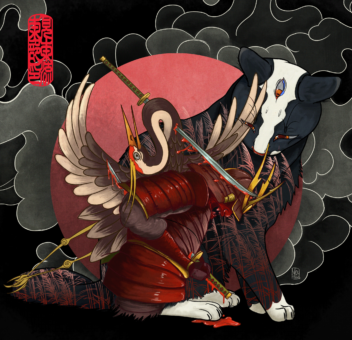 Низко опустив голову, Кусакиро вышел из дома и пошел не разбирая дороги к лесу. Выйдя на поляну, где когда-то встретился с Огненным Лисом, он поднял морду к небу и закричал. Это был страшный крик раненого в сердце зверя, который понимает, что ему отпущены последние мгновения жизни и кричит, надеясь этим криком высказать все то, что осталось им невысказано.