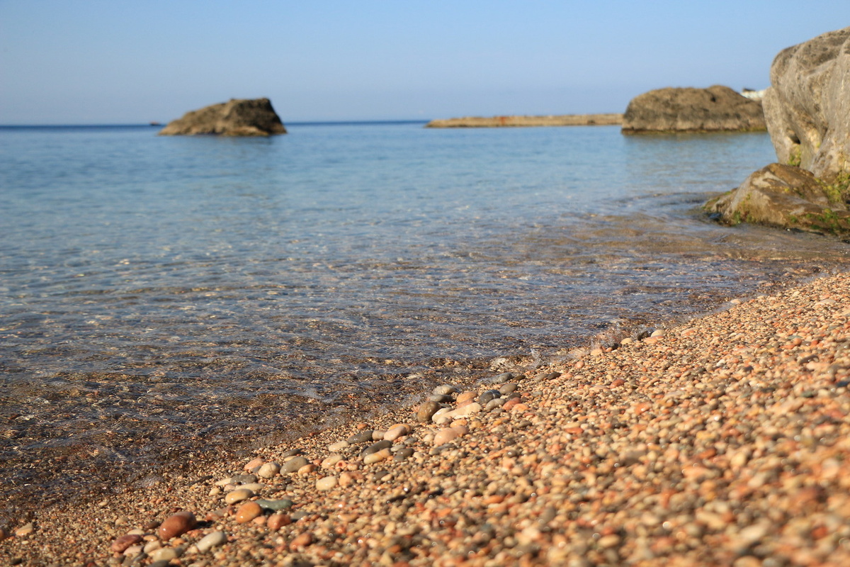 - «Розовый» пляж. Когда-то на пляж был завезен розовый гравий. Морские воды обкатали этот участок до приятной на вид гальки. Место нравится дайверам.