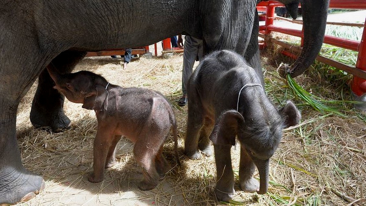 В Таиланде на свет родились редкие слонята В Таиланде на свет на днях появились редкие слонята. Сотрудники заповедника, принимавшие роды у слонихи Джамджури, были удивлены. Дело в том, что в процессе родоразрешения сначала появилась девочка, а через 18 минут — ещё и мальчик. Двойня у этих млекопитающих — явление крайне редкое. Такие случаи составляют менее 1%. Индийский, он же — азиатский слон — занесён в Международную Красную книгу. Слоны — вторые по величине наземные животные на нашей планете. Фото: Российская газета Ещё больше новостей на сайте «Изнанка»