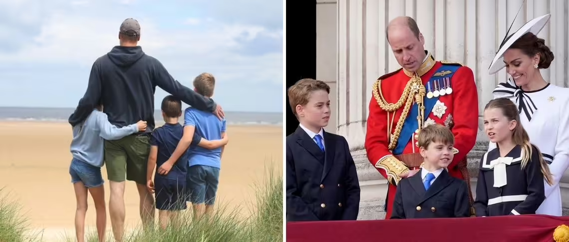 На снимке изображены принц Уильям, принц Джордж, принцесса Шарлотта и принц Луи, стоящие на пляже в Норфолке и любующиеся прекрасным видом. На снимке Уильям нежно обнимает троих своих детей.
