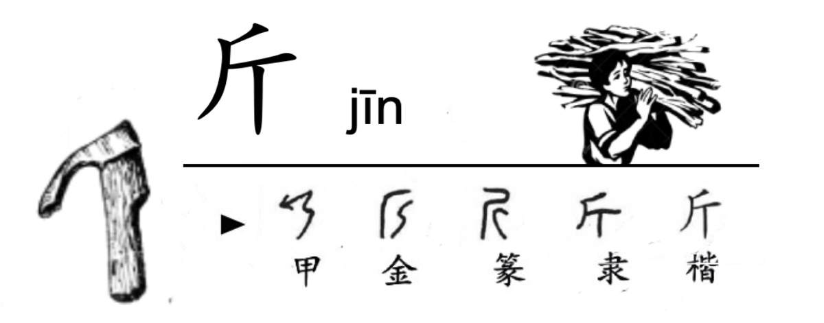 Китайский иероглиф 斤 на самом деле похож на древний топор. Хотя почему похож? Он и есть тот самый топор древнего китайского труженика: