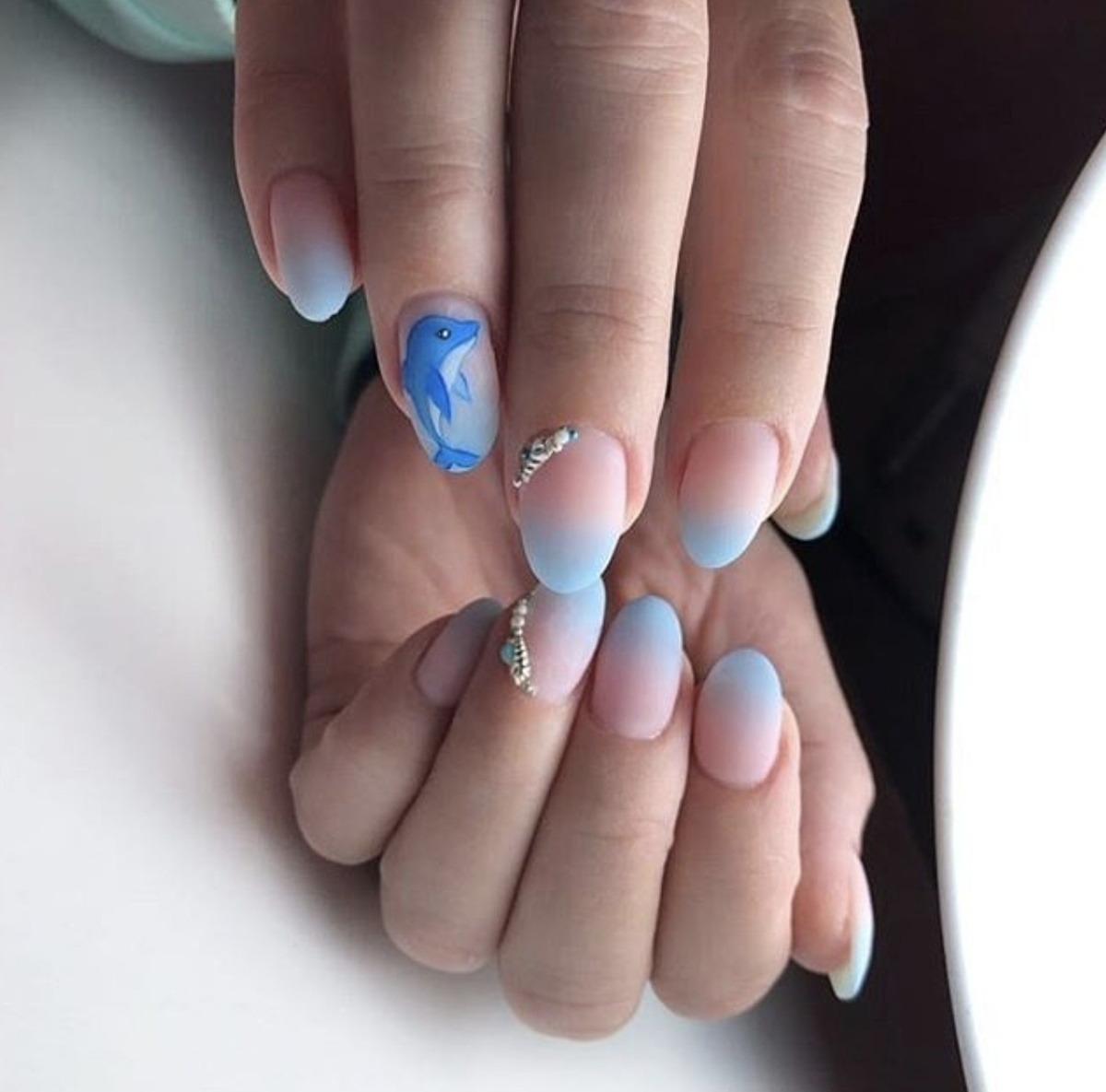 Модницы с удовольствием рисует на ногтях якоря, парусники, линию берега, замки из песка и рыбью чешую. В конце концов, это приятное напоминание о том, что прогулка вдоль волн не за горами.
