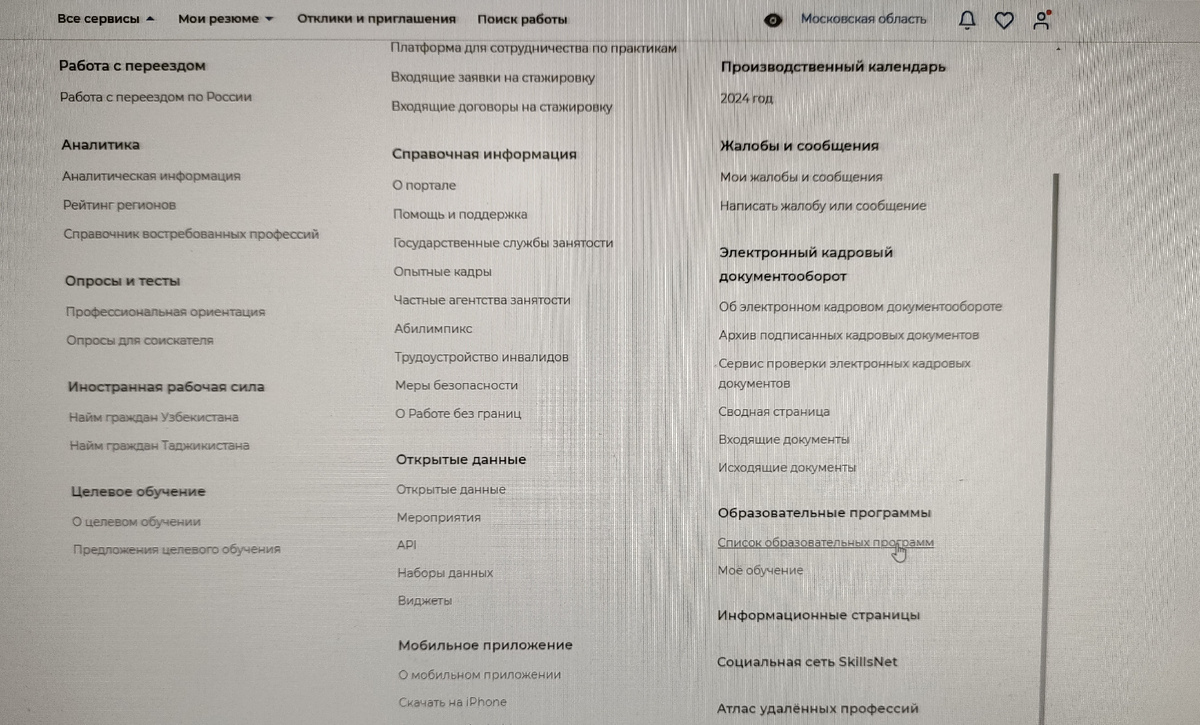 Вы хотите бесплатно получить новую специальность, пройти курсы и расширить свои знания? Это возможно благодаря федеральному проекту «Демография». Я поделюсь с вами, как пройти все стадии заключения этого договора. О начальном этапе я писала здесь Итак, вы сходили в МФЦ (центр занятости) и встали на учет, как ищущий работу и не претендующий на пособие. У меня спросили паспорт, СНИЛС, выписку из трудовой книжки (заказывала на Госуслугах), письмо-приглашение и документ об образовании. Будьте готовы, что в МФЦ будет заминка с оформлением. Я, например, была первая с таким статусом за время существования этого федерального проекта. Далее вы подаете само заявление на обучение. Можно предварительно задать вопросы по опубликованным контактам, отвечают довольно оперативно. Заходите: Все сервисы-Образовательные программы-Список образовательных программ. Перед вами будет список программ, доступных для прохождения для вашего региона. Да, там есть не все, что хотелось бы. Но все равно, это хороши