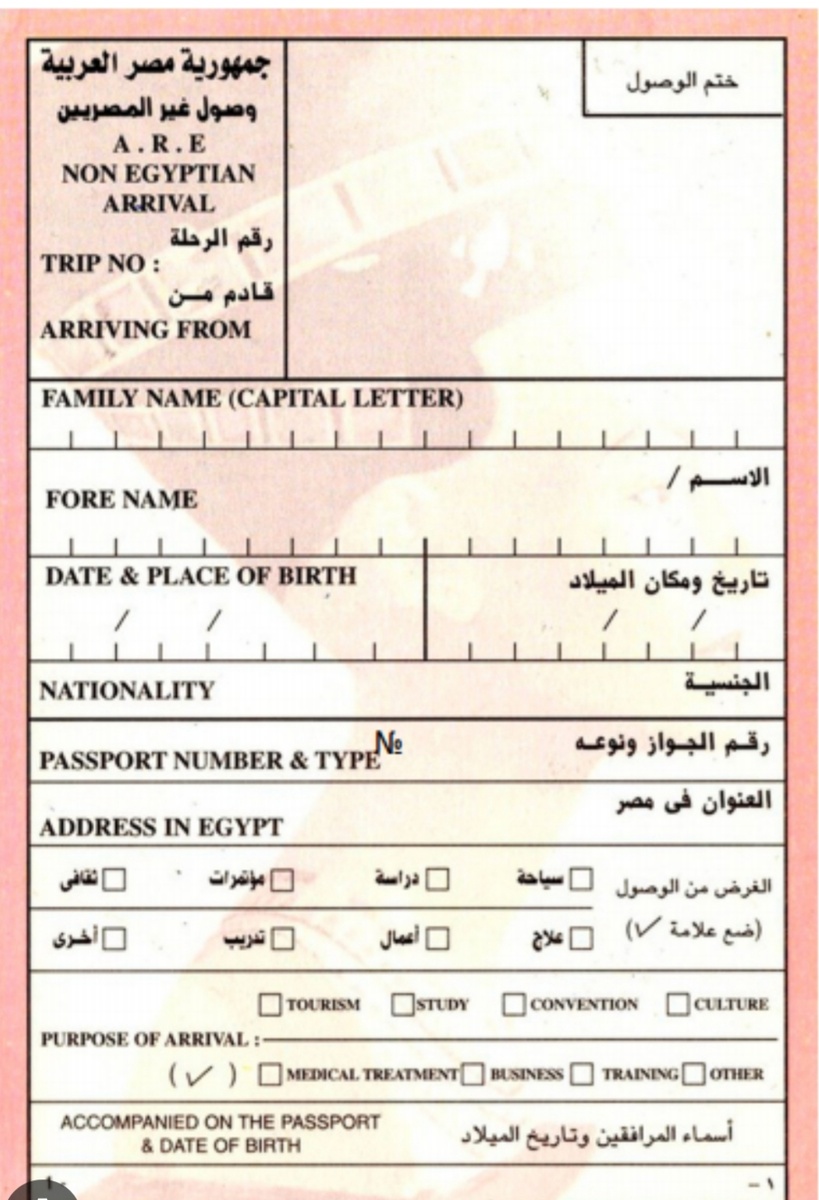 7. Adress in Egypt - указываем название отеля, если будем проживать в отеле.