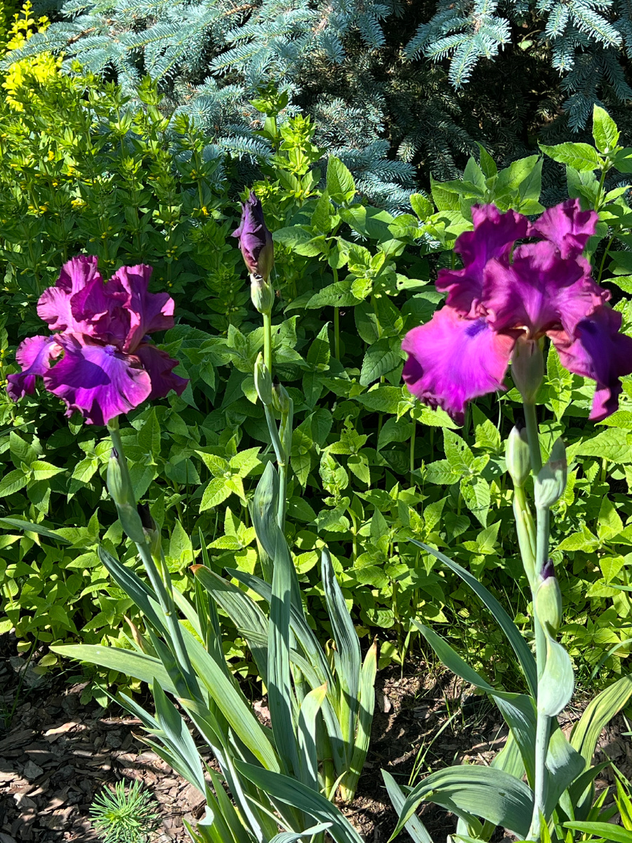 Я стала равнодушна к ирисам бородатым. Может просто надоели за годы. Безусловно, они мощные, красивые. Но в прошлом году на некоторые напал фузариоз и вот я намучилась очищая корни, присыпая, отрезая и вычищая. Уже тогда была мысль избавится от них совсем, но стало жалко. Растения по-моему чувствуют наше отношение к ним. Чувствуют когда мы возимся холим и лелеем их - капризничают еще больше. А когда машем рукой - да и выброшу, доказывают свою красоту мощным цветением Перед дождями уезжая к дочери в город все цветущие отрезала и отвезла ей, иначе дождь завалит цветоносы больше метра. Пусть дома радуют и распускаются постепенно Люблю свои мини ирисы, цветут не болеют и всегда дружненько. Вот и думаю заменить обычные на них. более светлые малыши Очередной мой интерес Ирисы германские Жаль цветут всего день два, но когда цветоносов много, получается долгое цветение. В этом году на него напала тля и слегка ослабила куст. Пора делить к тому же… И первый раз зацвел посаженный прошлой вес