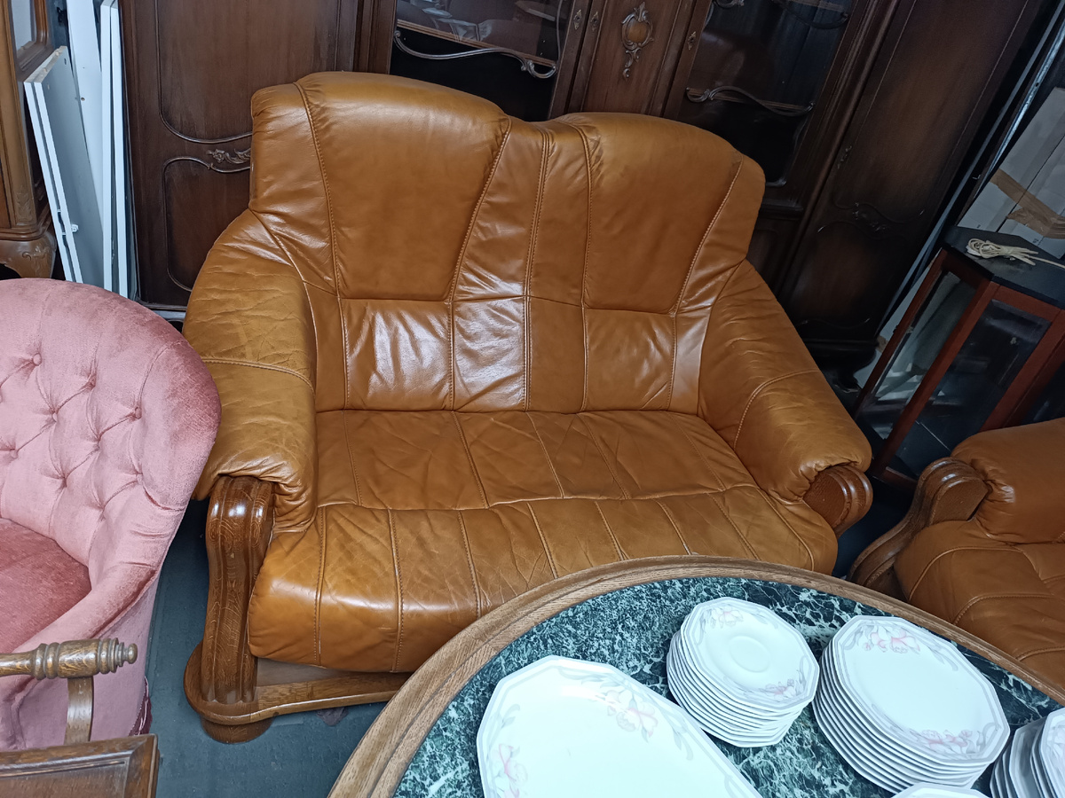 Диван три два один, полностью из натуральной кожи коричневого цвета , простой и удобный без функции и без ящика, отличный вариант для дома