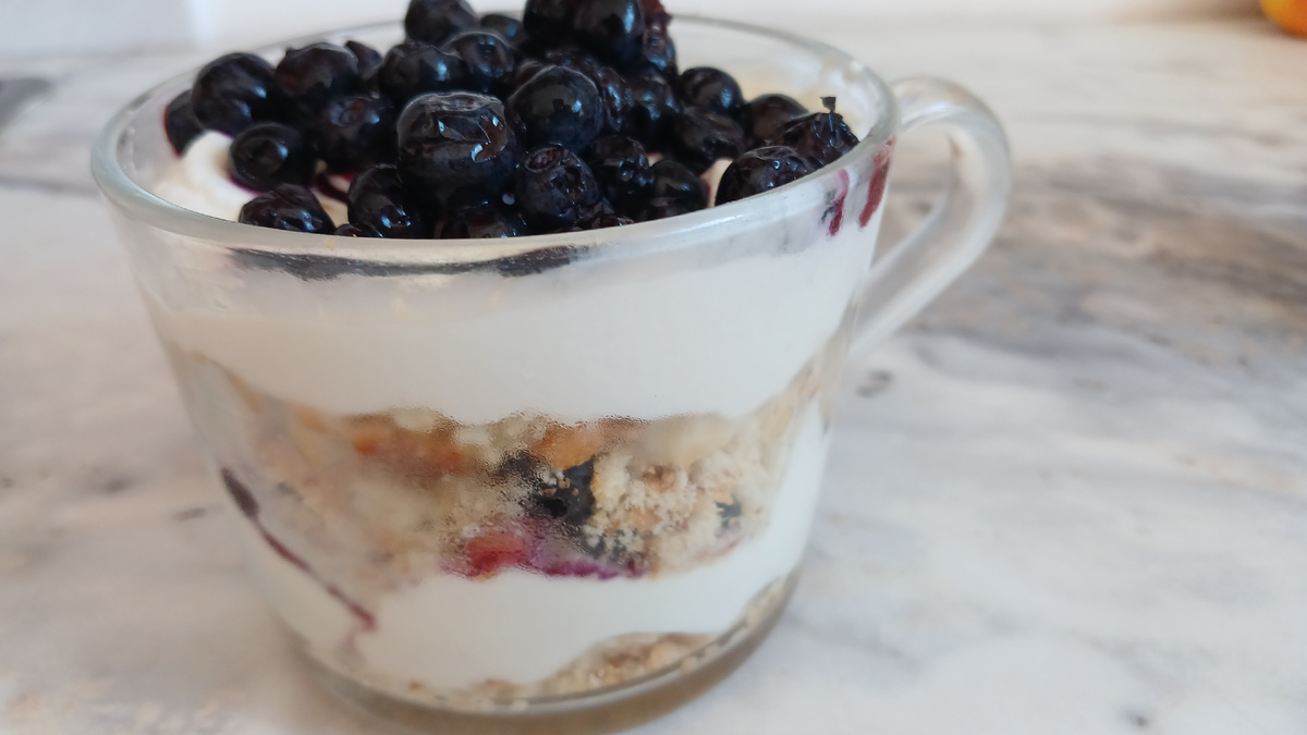 Экономное питание на 233 руб в день Сегодня у нас 5-й день без магазинов. Готовлю из того, что есть дома. Заканчиваются овощи и фрукты. Но на сегодня еще точно хватит. Завтрак а ля трайфл из печенья, мягкого творога и черники. Все уложила слоями в стаканы. А ля - потому что настоящий трайфл делается из бисквитов с прослойкой из заварного крема или взбитых сливок. У меня же тут своя песня. Но тоже вкусная и интересная. к трайфлу бутерброд с сыром гауда на ржаном хлебе, нарезка фуэта с инжиром, остатки камамбера с абрикосовым джемом, кофе эспрессо и конфета Вдохновение Обед у меня было уже все готово для литовского холодного борща. И яйца вареные были в холодильнике. Так что только в тарелки положили. хлебушек у нас сейчас вот такой, пекла ржаной по рецепту с мастер-класса на ВДНХ. Половину сделала с курагой, половину обычного. Большой пакет нарезанного хлеба заморозила. Хорошо, когда он есть в морозилке. и после обеда кофе с халвой в шоколаде После обеда со старшим сыном и с собакой