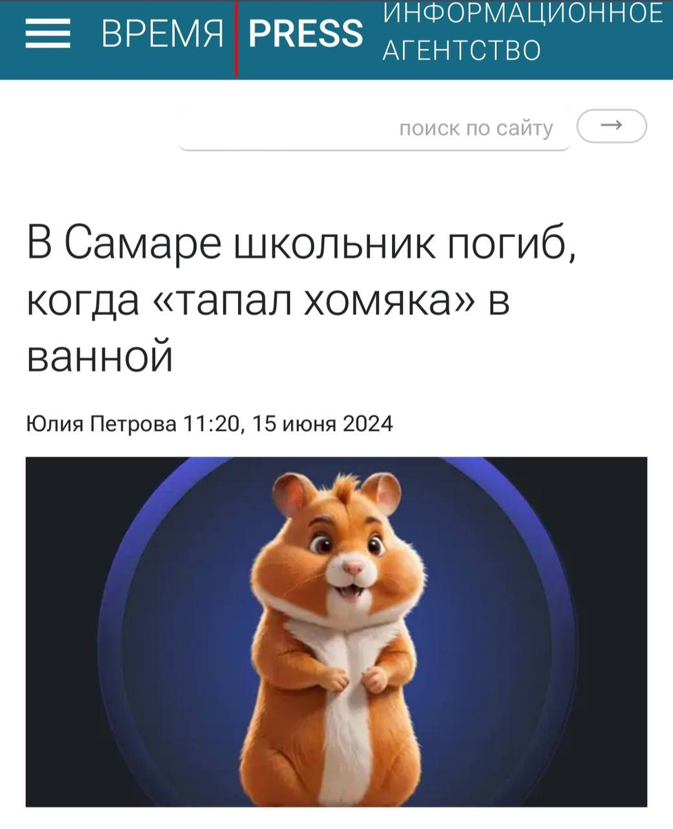Школьник погиб из-за игры в Hamster Kombat сообщают СМИ