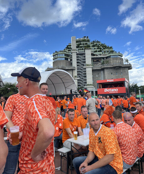 Любовь Курчавова – из оранжевого Гамбурга. Кажется, перед матчем Польша – Нидерланды не было телеграм-канала, который бы не запостил это видео: В Гамбург я приехала в районе десяти утра, так что не застала феерию. В фан-зоне было спокойно. Неподалеку от нее ко мне подошел болельщик Нидерландов: – Пойдешь с нами в бар? – Извините, ребята, я на работе. В метро спускаюсь уже с другой компанией. Один из болельщиков, показывая на аккредитацию, спрашивает: «Что это?» Быстро объясняю, и после этого мы болтаем о сборной. Спрашиваю, каков прогноз на матч («2:0, победа Нидерландов»), как повлияет на команду травма де Йонга («Очень плохо, жаль, что его не будет. Один из лучших») и как в Нидерландах относятся к тому, что сборную тренирует Куман («Его все любят, он точно добьется успеха»). Недолго молчим, и кто-то из ребят говорит: «Ну все, ты теперь за Нидерланды?» Меня отказываются отпускать без флагов на щеках – пока их рисуют, к рюкзаку за спиной привязывают два оранжевых воздушных шарика: «Во