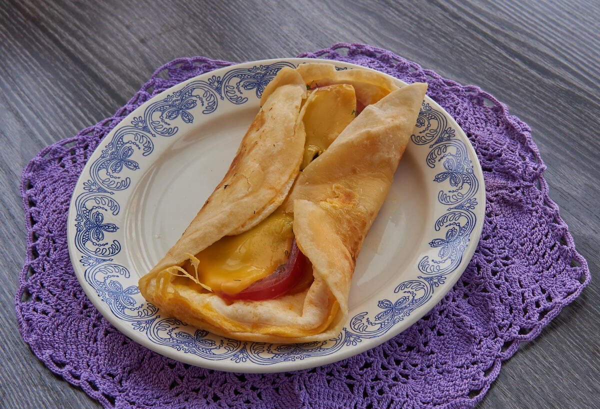Вкусный, сытный завтрак за 5 минут — идеальное решение для тех, кто ценит свое время и заботится о питании. Я в восторге от таких блюд, которые быстро готовятся, а при надолго насыщают организм. Даже просыпаясь на работу в 05:30 (а мне утро всегда дается очень тяжело), мне совсем не сложно приготовить этот завтрак для себя и мужа. Нам так понравилось, что сейчас уже 3 день я готовлю такой завтрак по просьбе мужа, да и самой он не надоел. Давайте приготовим вместе это прекрасное блюдо! Начнем с ингредиентов: - 1 тортилья или круг из лаваша - 2 яйца - 40 г сыра - 40 г ветчины - 30 г помидор - соль, перец, зелень. Теперь перейдем к процессу приготовления: В миске взбейте яйца с небольшим количеством соли и/или перца. Это придаст им дополнительный вкус и аромат. Разогрейте сковороду с антипригарным покрытием на среднем огне и слегка смажьте ее маслом. Вылейте взбитые яйца на сковороду и подождите, пока они слегка схватятся. Выложите тортилью сверху. Когда яйцо схватиться переверните