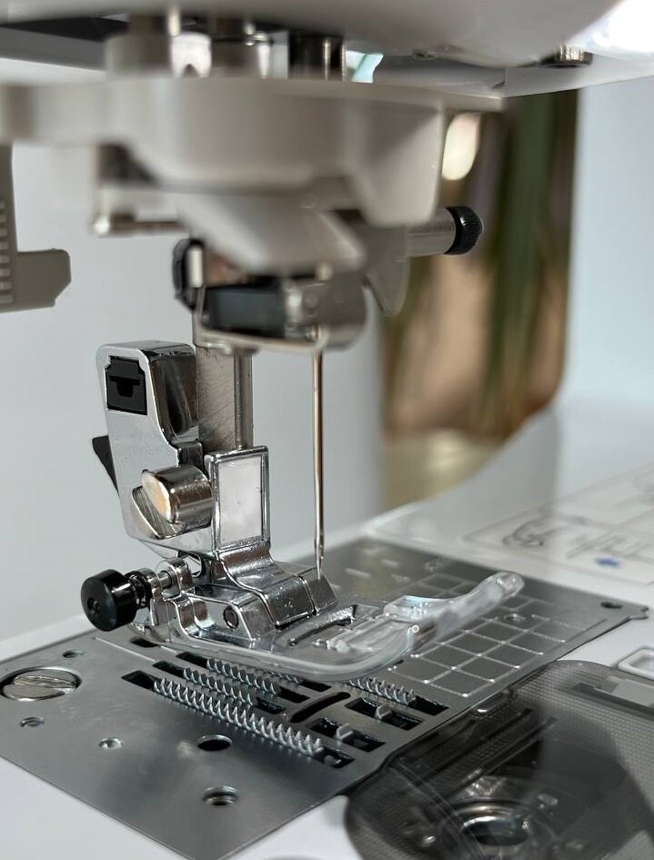 Во-вторых, отрегулируйте и уменьшите давление лапки на ткань (если данная настройка доступна в вашей швейной машине). И вместо стандартной установить специальную шагающую лапку.