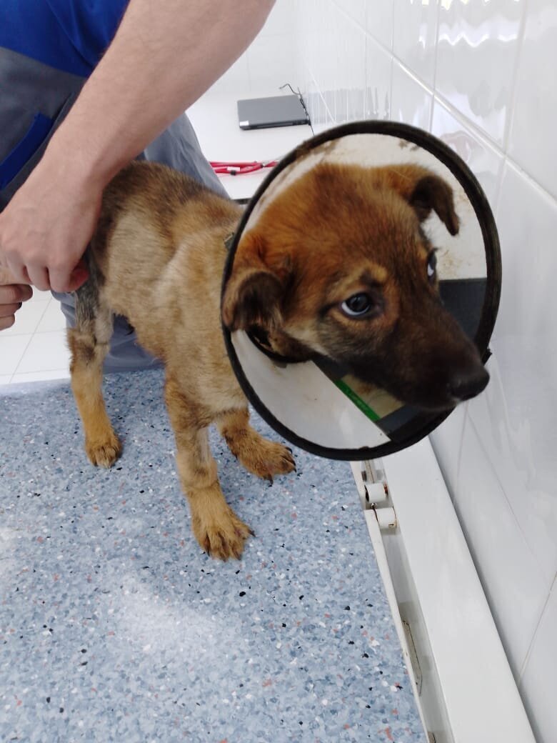 Маленького щенка нашли на мини-рынке в северо-западном районе. Место, где много машин и еще больше спешащих по своим делам людей - не самое лучшее для хрупкого несмышленыша. Кто-то пнул или наехал на щенка, и две задние лапы у собачьего ребенка сломаны. Щенулю привезли в клинику, назвали Джесси, перелом обеих задних лап, высокая температура, моча темного цвета. Джесси прооперировали, сделаны две операции на задних лапках. Пришлось оперировать срочно, несмотря на высокую температуру. Отеки стали увеличиваться, вдобавок, она - щенок, и кости могут срастись неправильно. Когда во время операции открыли раны, увидели, что там скапливается серомы, серозная жидкость. Во время операции всё это зачистили, полость обработали и наложили швы. Большую часть времени Джесси лежит, температура периодически поднимается. Прогноз был осторожный, но Джесси умничка, пошла на поправку и сейчас находится в приюте. Стала любопытной и шустрой, как все маленькие дети, кости срастаются. Все переломы у Джесси сро
