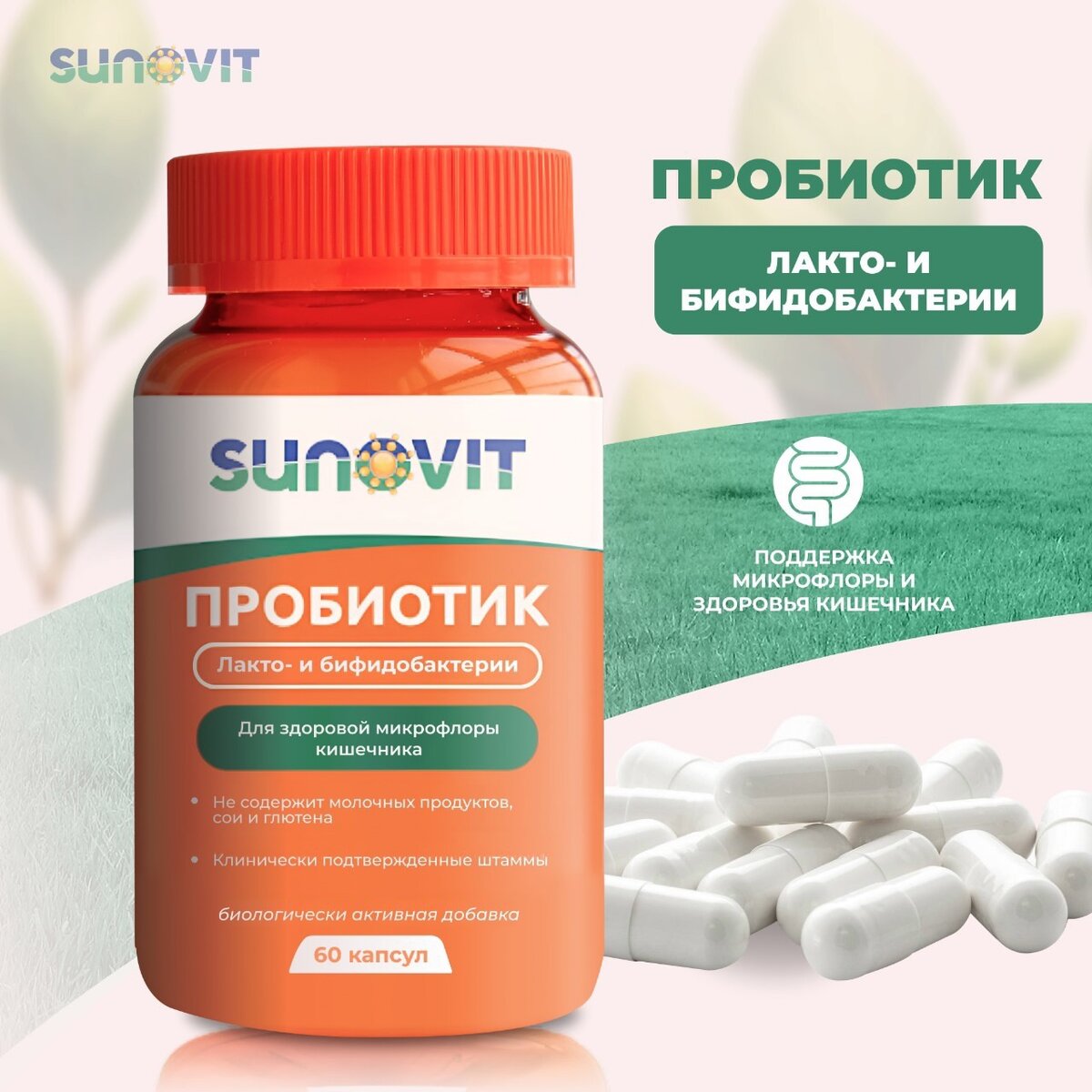 - Улучшение пищеварения: забудьте о проблемах с пищеварением! SUNOVIT пробиотик нормализует работу желудочно-кишечного тракта.