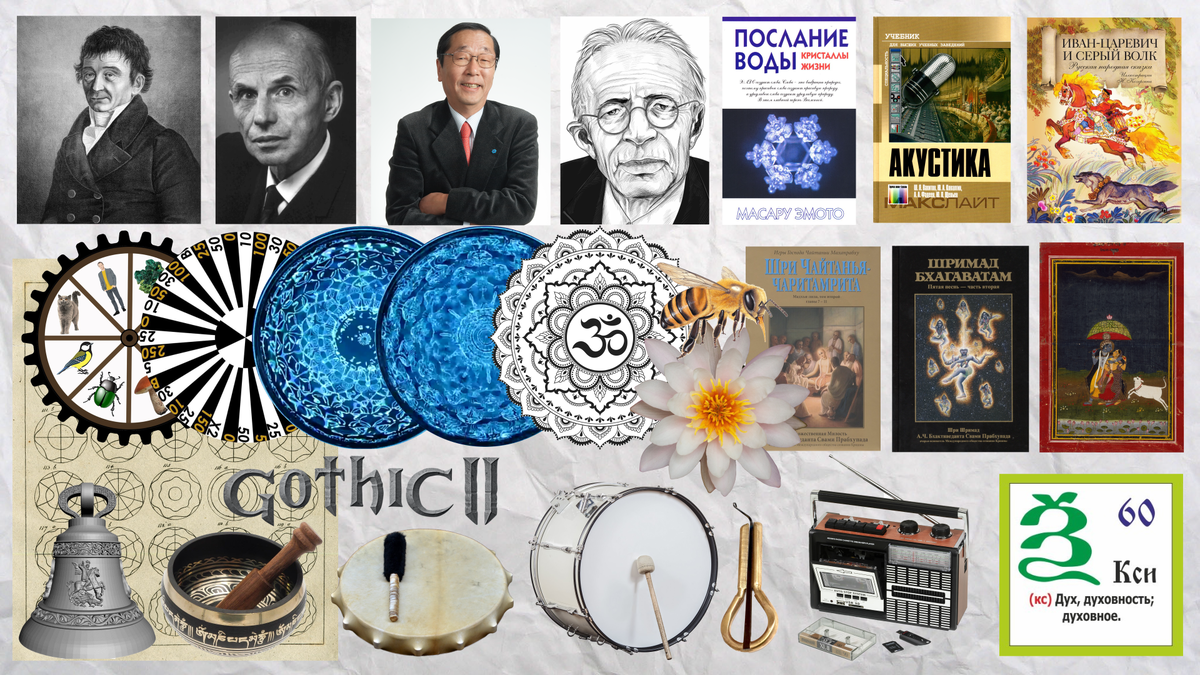 Говоря про материализацию и геометрию звука, нельзя ни упомянуть про известные эксперименты японского исследователя структуры воды Маса́ру Эмо́то. Маса́ру Эмо́то – это японский исследователь, известный экспериментами, направленными на доказательство того, что вода обладает способностью воспринимать информацию от окружающей среды. Основной метод доказательства состоит в воздействии на воду произносимыми и написанными словами и изучении структуры кристаллизации такой воды, которая изменяется в зависимости от смысла этих слов. В 1999 году Эмото издаёт книгу «Послание воды», содержащую фотографии кристаллов с пояснением, какая информация была послана воде.