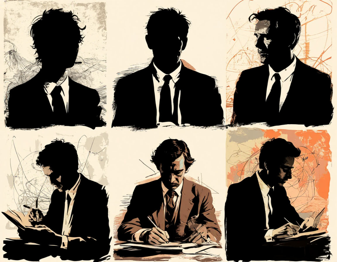 Маленькая оговорка - на этой картинке не нужно искать конкретных писателей. Мы ее создали в нейросетях, тут обобщенные образы. Вся конкретика вас ждет ниже.