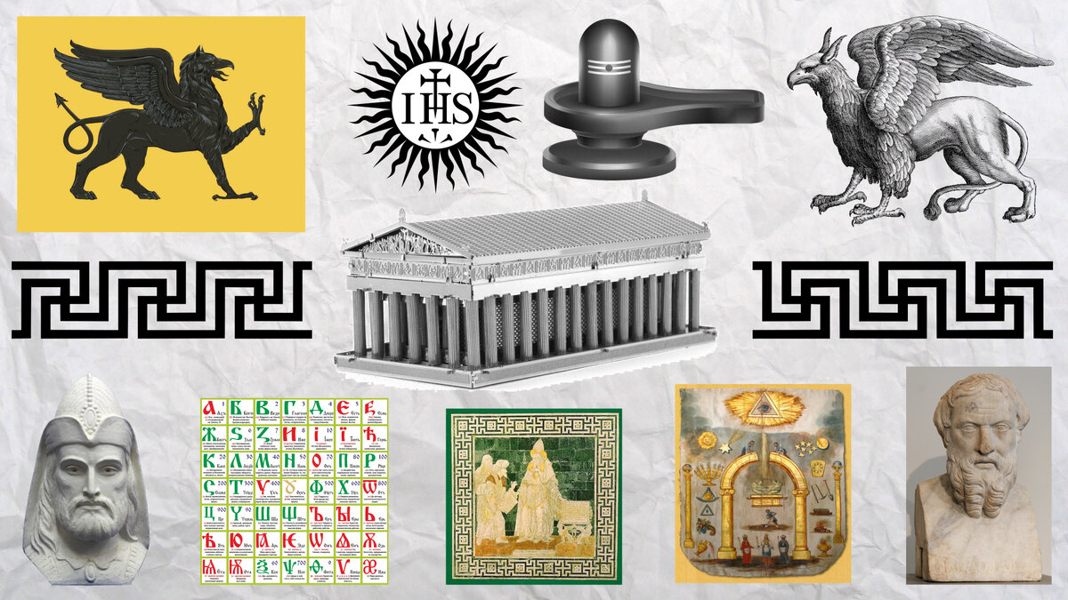 Именно поэтому по всей Земле и расположены античные мегалитические сооружения, имеющие единые символы. Такие как, рысич, рубежник, грифоны и символы нашей славянской буквицы. Именно эти символы и связывают воедино между собой Аполлона, его храм, Гиперборею и Тартарию.