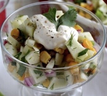 Свежий салат из кукурузы с добавлением сочного красного яблока.