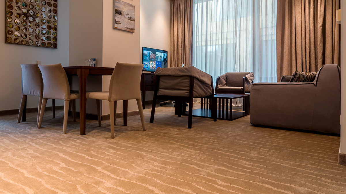 Ковролин, ковровая плитка – уже давно привычное напольное покрытие для отелей и гостиниц. Этот материал можно встретить как в номерах, так и в коридорах, конференц-залах – практически везде. В этой статье поговорим о том, почему именно ковровые покрытия пользуются такой популярностью – на примере современного московского отеля. Ковровые покрытия выбирают за их прекрасные показатели шумоизоляции. В отеле это особенно ценно – чтобы постояльцы не мешали друг другу и могли качественно отдохнуть. Также по ковролину и ковровой плитке приятно ходить босиком, покрытия тёплые и комфортные на ощупь. Покрытия выдерживают высокие нагрузки и рассчитаны на длительную эксплуатацию. Принято считать, что ковровые покрытия доставляют проблемы в уборке – но качественная бытовая техника легко справляется с уходом за материалом. Для отделки номерного фонда общей площадью 1200 м2 в качестве напольного покрытия был выбран ковролин. Спокойный, ненавязчивый оттенок пола создаёт фон, необходимый для создания ра