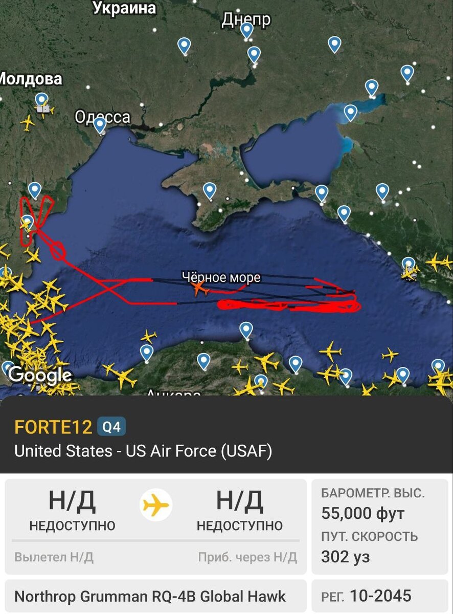 Опять наматывает круги у Крыма стратегический беспилотник США, выискивает цели, где укронацисты будут бить по нам импортным оружием. Американское военное присутствие у берегов Крыма и в Черном море надо бы прекращать. Для этого нет никаких юридических препятствий. Не существует никаких международных договоров, которые бы мешали сбивать на территории театра военных действий любые вражеские военные летательные аппараты. Страны, прямо или косвенно участвующие в войне против России, нужно именовать вражескими или неприятельскими. То, что этого до сих пор не делается, не имеет юридического объяснения. Правовая квалификация таких разведывательных действий и полетов - это прямое и непосредственное участие США и стран НАТО в организации и боевом управлении укронацистскими силами, воюющими против России. Это официальное участие в войне, происходящей вне зоны НАТО - Северной Атлантики. Чёрное море ведь не влилось в ещё Атлантический океан и трансатлантические договоры англосаксов ему нипочем. И