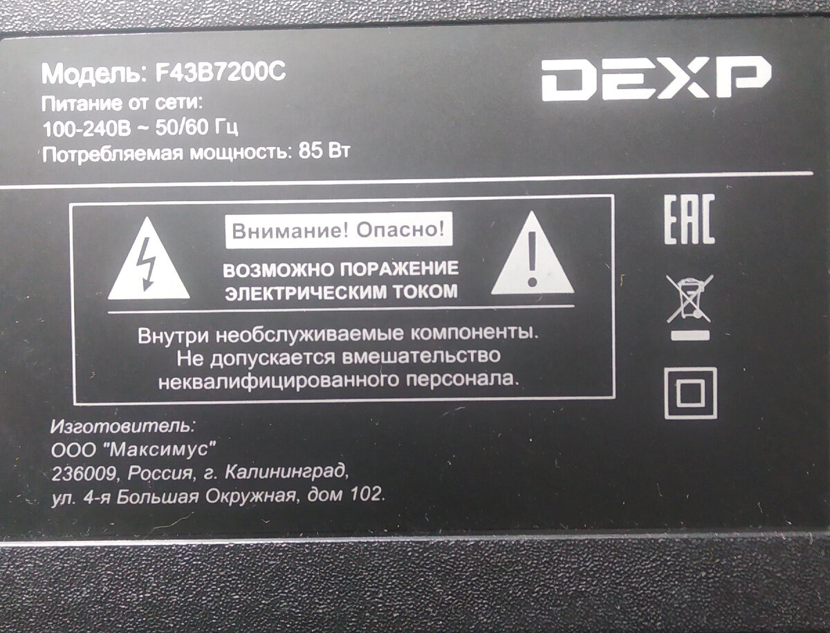 ТВ DEXP F43B7200C, не включается, дежурный режим- часто моргает.